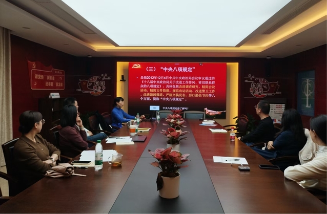 孙志青首先领学《中共中央八项规定》及《中央八项规定实施细则》全文,并对“什么是中央八项规定?什么是中央八项规定精神?”以及违反中央八项规定精神具体表现进行全面阐释。
