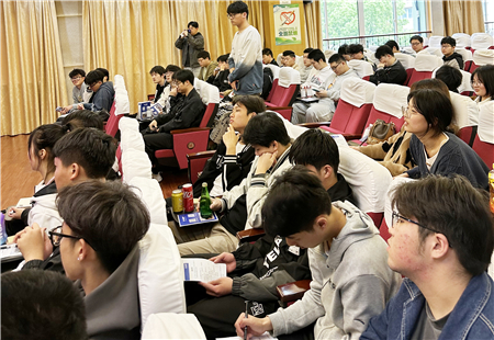 企业则通过有奖问答法,将宣讲会上内容渗透重现,帮助同学们加深了解企业培养方案以及企业文化、福利待遇等。同学们在一问一答中,对于自己第一份工作的选择,显然已了然于心。茅昱经理在最后强调,水立方背后的吸声泡沫就是我们公司提供的,从他自信的言语里,为祖国贡献企业力量的自豪感油然而生。