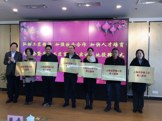 会上,高等职业学院在上海市总工会主办的百名劳模工匠服务千家企业和校园活动中被授予首批“上海市劳模工匠育人基地”。在市总工会领导的见证下,林娟娟代表学院与中国石化上海石油化工股份有限公司主任技师“上海工匠”陆定良签署了上海市劳模工匠育人基地和学生实训基地合作共建协议书。