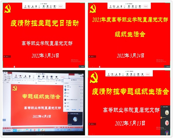 战“疫”有担当 ,党支部在行动:上海市3月新冠疫情防控以来,在大上海保卫战中,学院直属党支部在学校党委的领导下,认真贯彻落实有关疫情防控会议精神和工作要求,学院先后召开支部委员会议、疫情防控党日活动、党员专题组织生活会、疫情防控专题组织生活会,教学工作委员会和全院教职工大会,传达学习习近平总书记重要讲话和指示批示精神、孙春兰到上海指示精神、全市领导干部大会精神、《致全市共产党员的公开信》,5月5日中央政治局和市委常委扩大会议精神等,要求学院教职工增强政治意识和全局观念,把疫情防控工作作为当前首要任务,坚守初心使命,奋勇担当作为,充分发挥党支部战斗堡垒作用,做好学院疫情防控各项工作,打赢大上海保卫战。