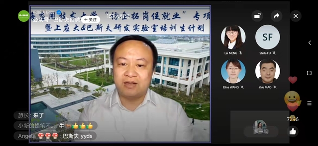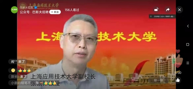 张锁怀在致辞中,代表学校感谢巴斯夫对学校产教融合、教育事业发展和毕业生就业工作的大力支持,介绍了学校发展定位和基本概况,重点介绍了化工学院和高职学院的人才培养目标、人才培养特色、学科专业特色,介绍了两个学院培养的中本贯通、中高贯通学生实验动手能力较强、岗位适应能力较好,做事踏实认真,对企业的忠诚度高,工作稳定性强等特点。他希望校企双方不断深化产教融合与校企合作,预祝本次上应大&巴斯夫研发实验室培训生计划-2022年空中宣讲活动取得圆满成功。