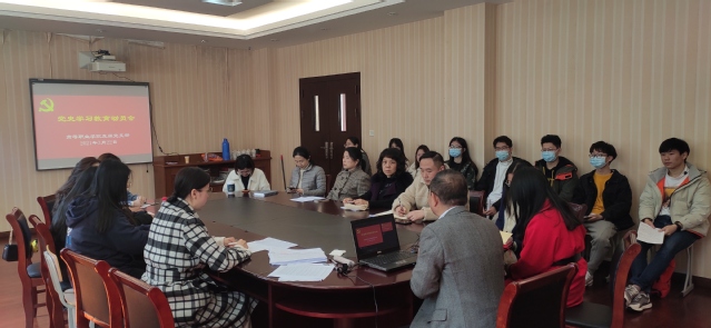3月22日,高等职业学院召开党史学习教育动员会,学院直属党支部书记孙雨明主持会议,全体师生党员参加学习教育动员会。