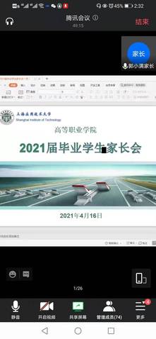 4月16日,高职学院通过“腾讯会议”平台,召开2021届毕业生家长会。学院书记孙雨明,副书记、副院长林娟娟,副院长赵韵,专业主任,毕业班辅导员,以及70余位学生及家长参加会议,会议由林娟娟主持。