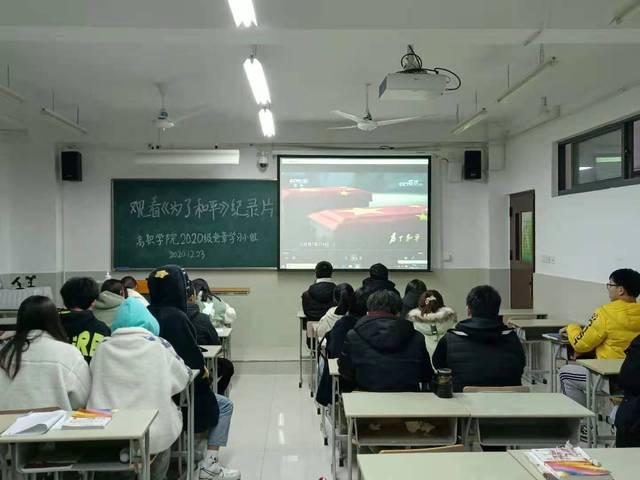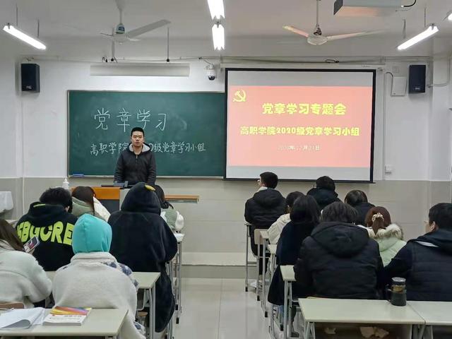 12月23日,高职学院学生党小组在梅陇校区组织2020级入党申请人,召开“党章学习”专题学习会和集中观看《为了和平》纪录片,开展“四史”学习教育专题党日活动。