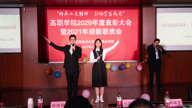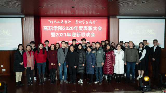 1月8日,高职学院2020年度表彰大会暨2021年迎新联欢会在梅陇校区隆重举行。高职学院书记孙雨明、校团委副书记周雄才和学院师生参加活动。