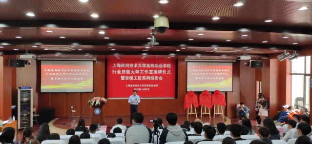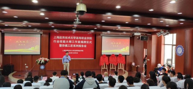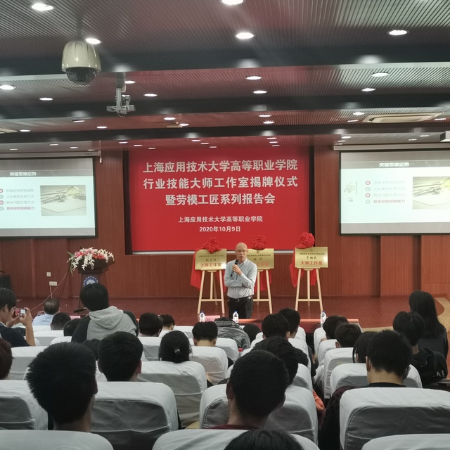 10月9日,高职学院行业技能大师工作室揭牌仪式暨劳模工匠系列报告会在梅陇校区隆重举行。