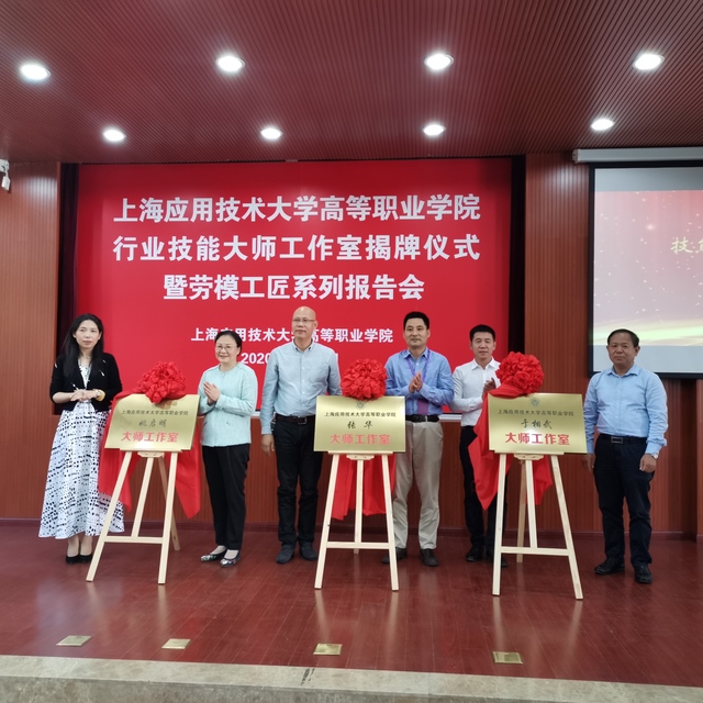 全国五一劳动奖章获得者、全国劳模姚启明,上海市五一劳动奖章获得者、上海工匠张华,上海工匠、第三十二届上海市优秀发明奖金奖于相武,分别进行了现场演讲,与会领导和嘉宾共同为“大师工作室”揭牌,学院领导为姚启明、张华和于相武颁发“企业导师”聘书。