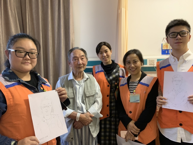 观影结束后,师生党员到龙华医院开展“志愿者服务在医院”活动,走进病房与患者面对面交流、俯下身倾听,为病人提供“零距离”服务,在志愿服务中传播党的精神、传递社会温暖,践行初心与使命。