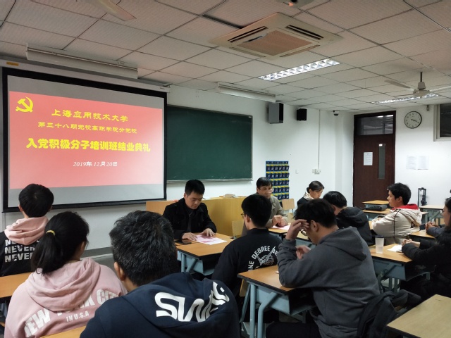 12月20日,高职学院举行分党校第38期入党积极分子培训班结业典礼,分党校校长、学院总支书记卢康道,分党校副校长、学院副书记、副院长林娟娟、专职组织员夏宁博,以及全体培训班学员出席了结业典礼,典礼由夏宁博主持。