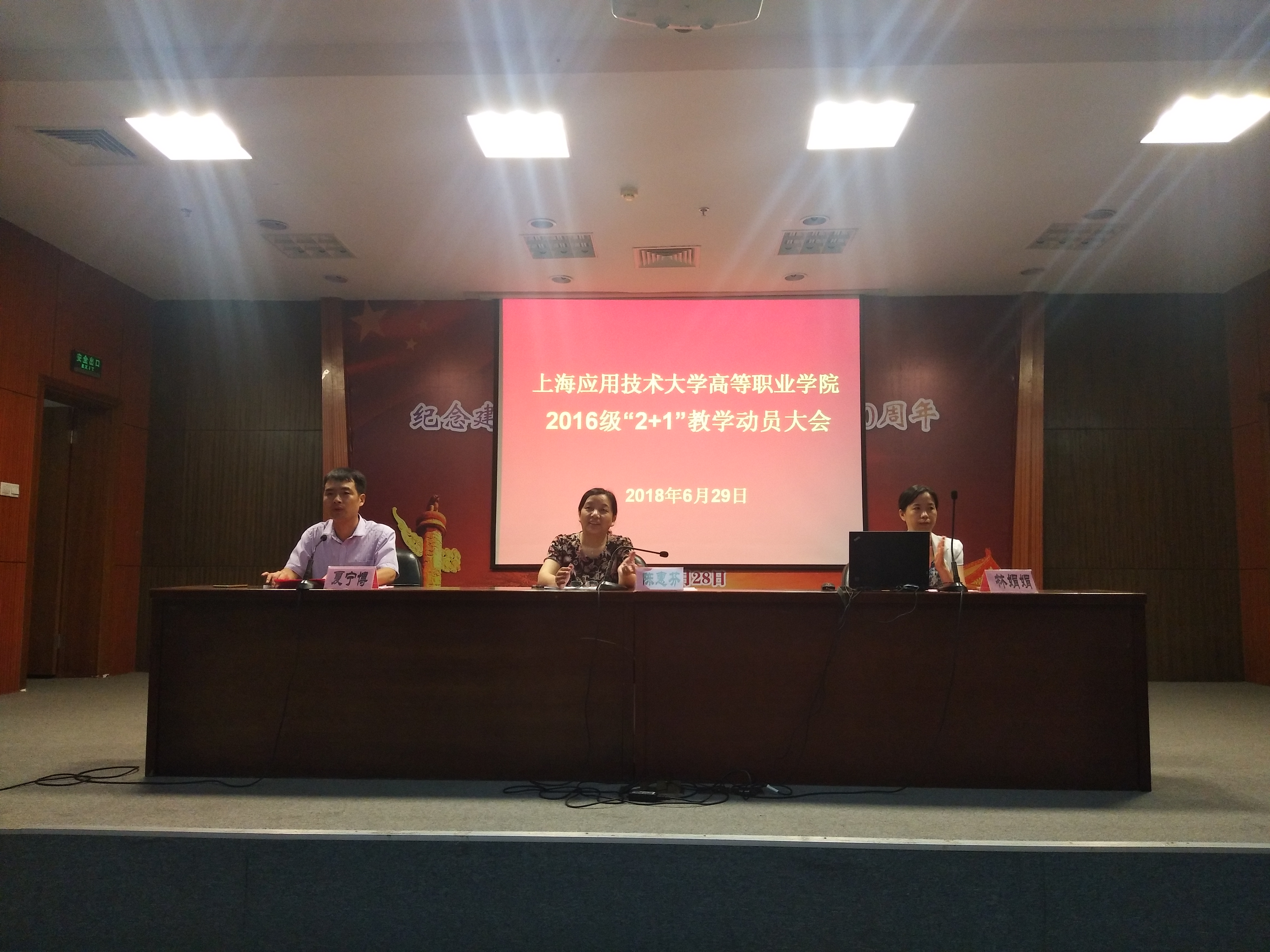 6月29日,高职学院在徐汇校区图书馆116报告厅举行2016级“2+1”教学动员大会,学院副院长陈惠芬,副院长、副书记林娟娟出席,专业办、教学办、学工办和两训办相关老师以及2016级徐汇校区高职学生参加动员大会。