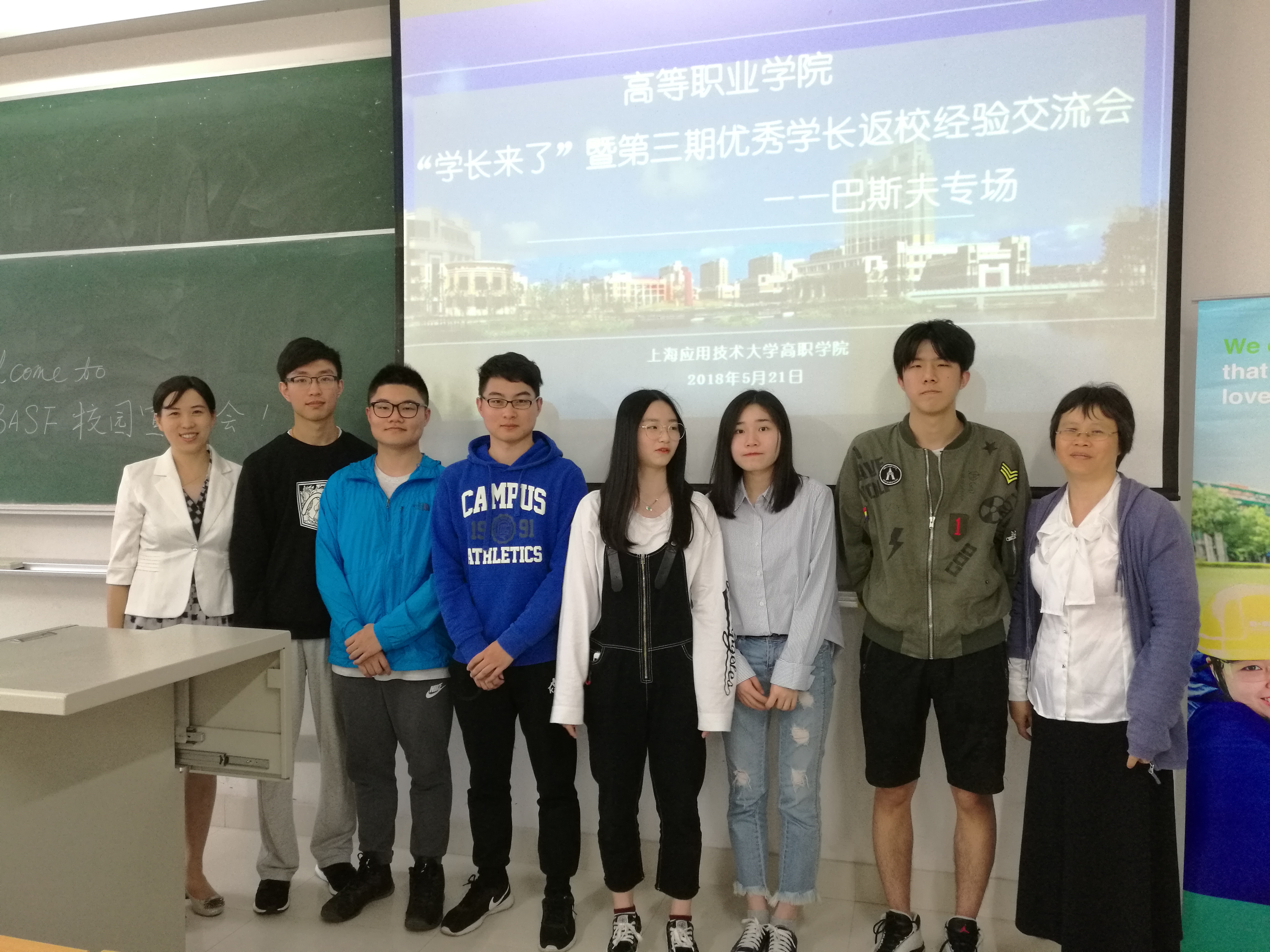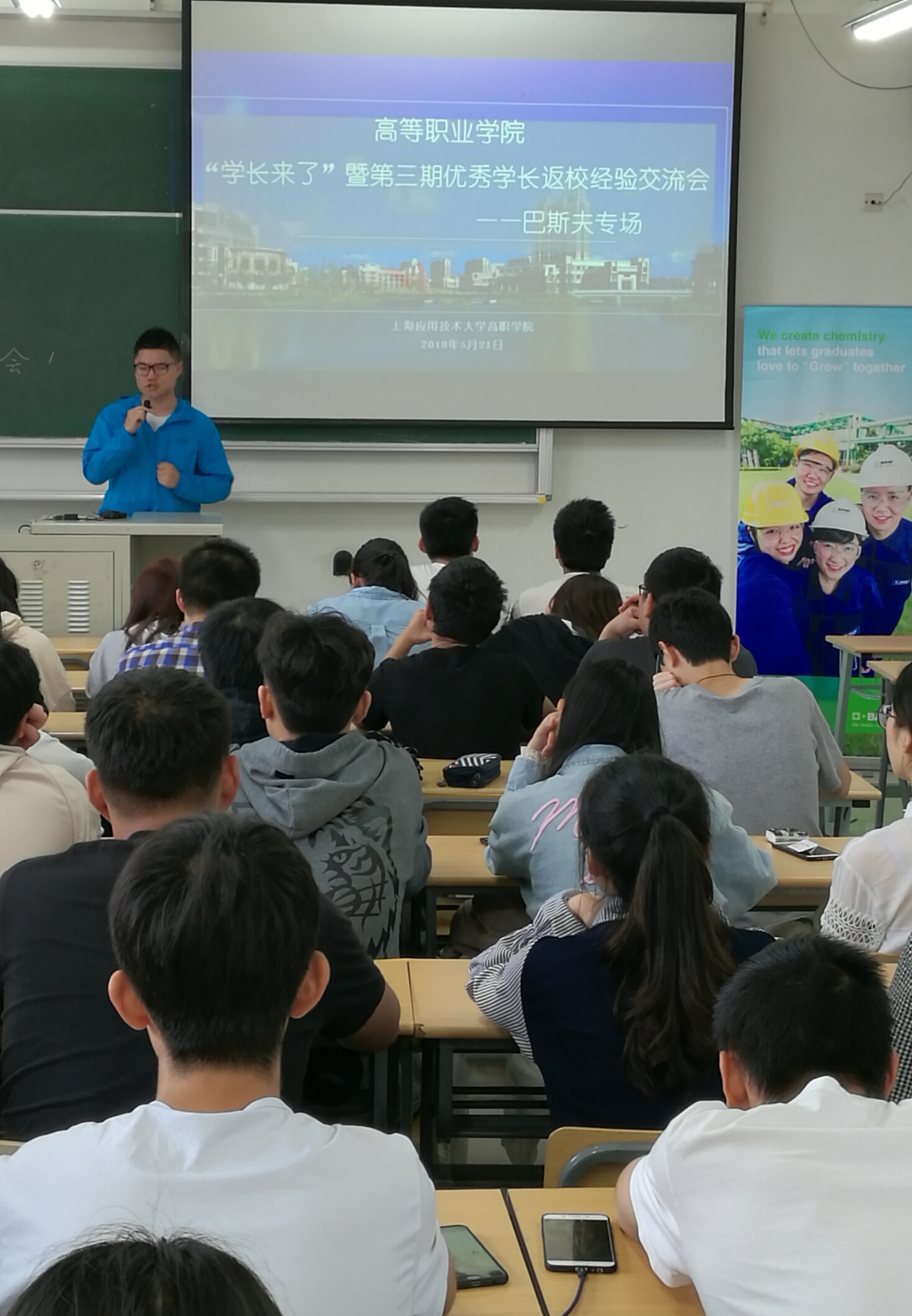 杨坤、纪一廷等六位已被巴斯夫公司录用的2016级优秀学长应邀前来进行经验交流,2017级应用化工技术(中高贯通)专业学生和辅导员参加了活动。六位学长结合自已在巴斯夫公司的制造部门、质量部门和客服部门的实习体验及工作感悟,从学习、就业和理想等方面激励学弟学妹要坚定信念、认真学习,不骄不躁,确立清晰的职业规划和人生定位,并欢迎大家加入巴斯夫大家庭。