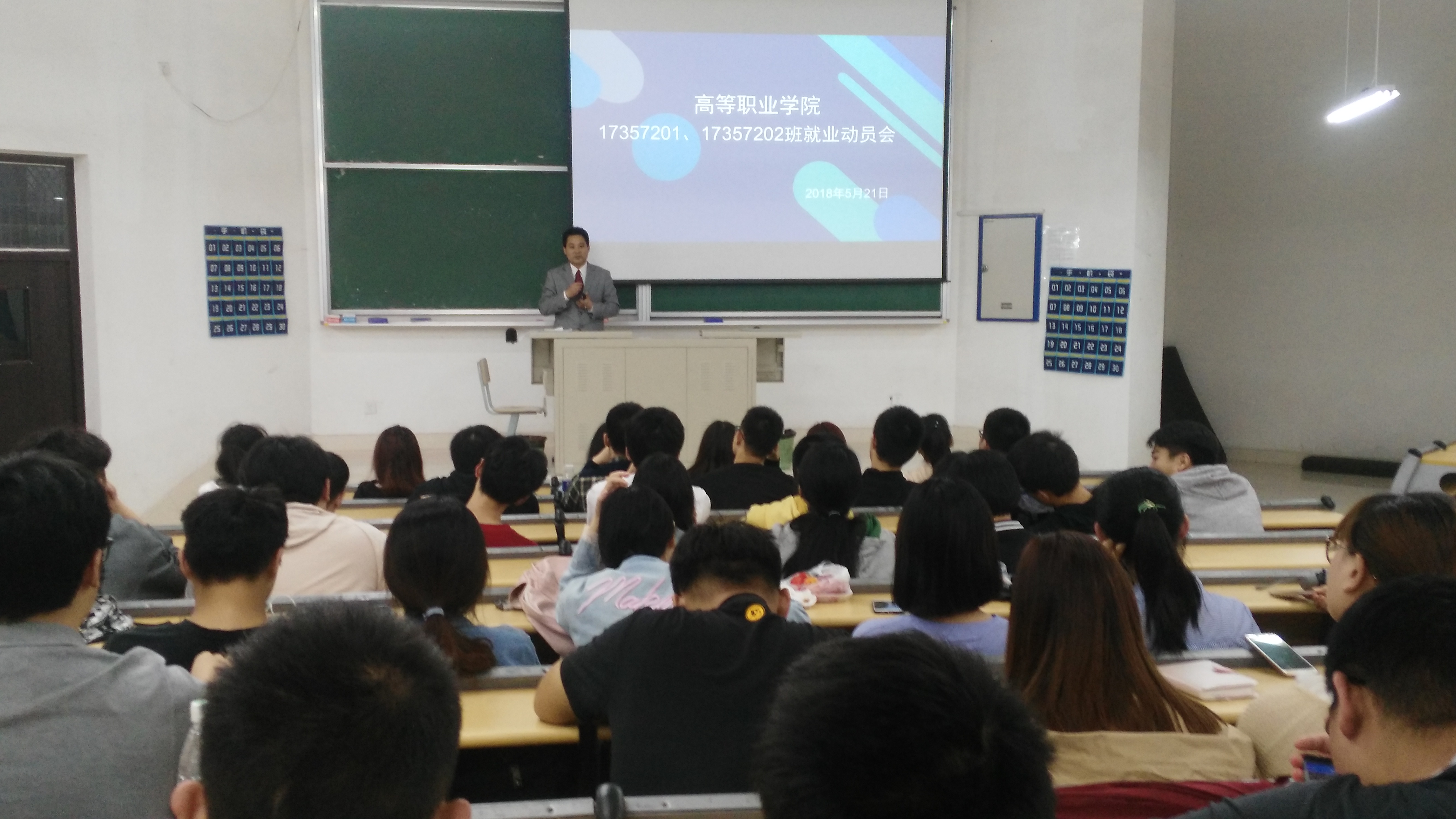 5月21日,高职学院在奉贤校区举行2017级应用化工技术专业(中高职贯通)就业动员大会。院长张东民、专业主任郁平、辅导员李伟华和2017级应用化工技术专业(中高职贯通)全体同学参加动员会。