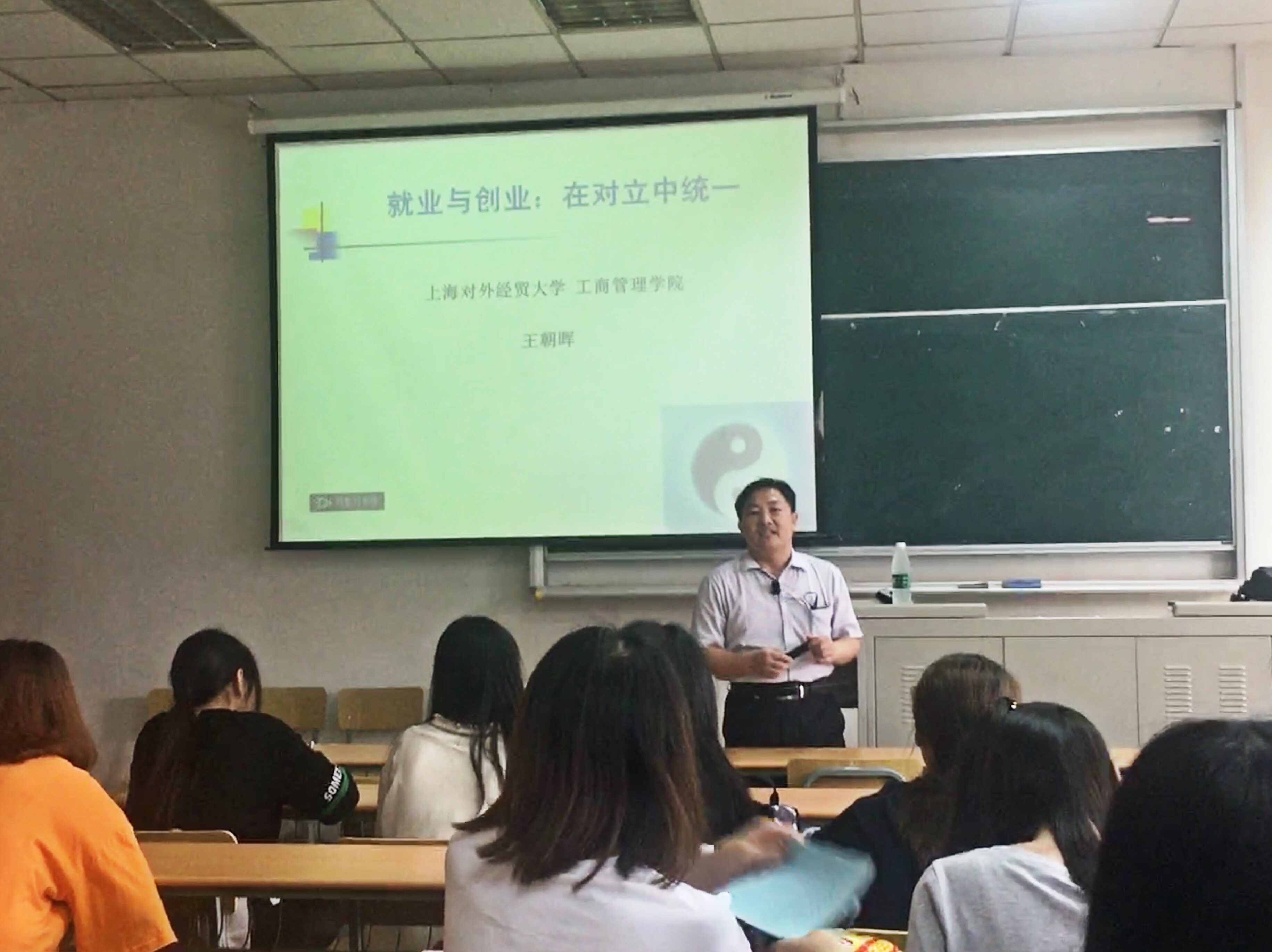 上海对外经贸大学工商管理学院副院长王朝晖教授分享了“就业与创业:在对立中统一”的讲座,为有创业想法的同学拨开了重重迷雾,相信同学们都有了更明确的目标。