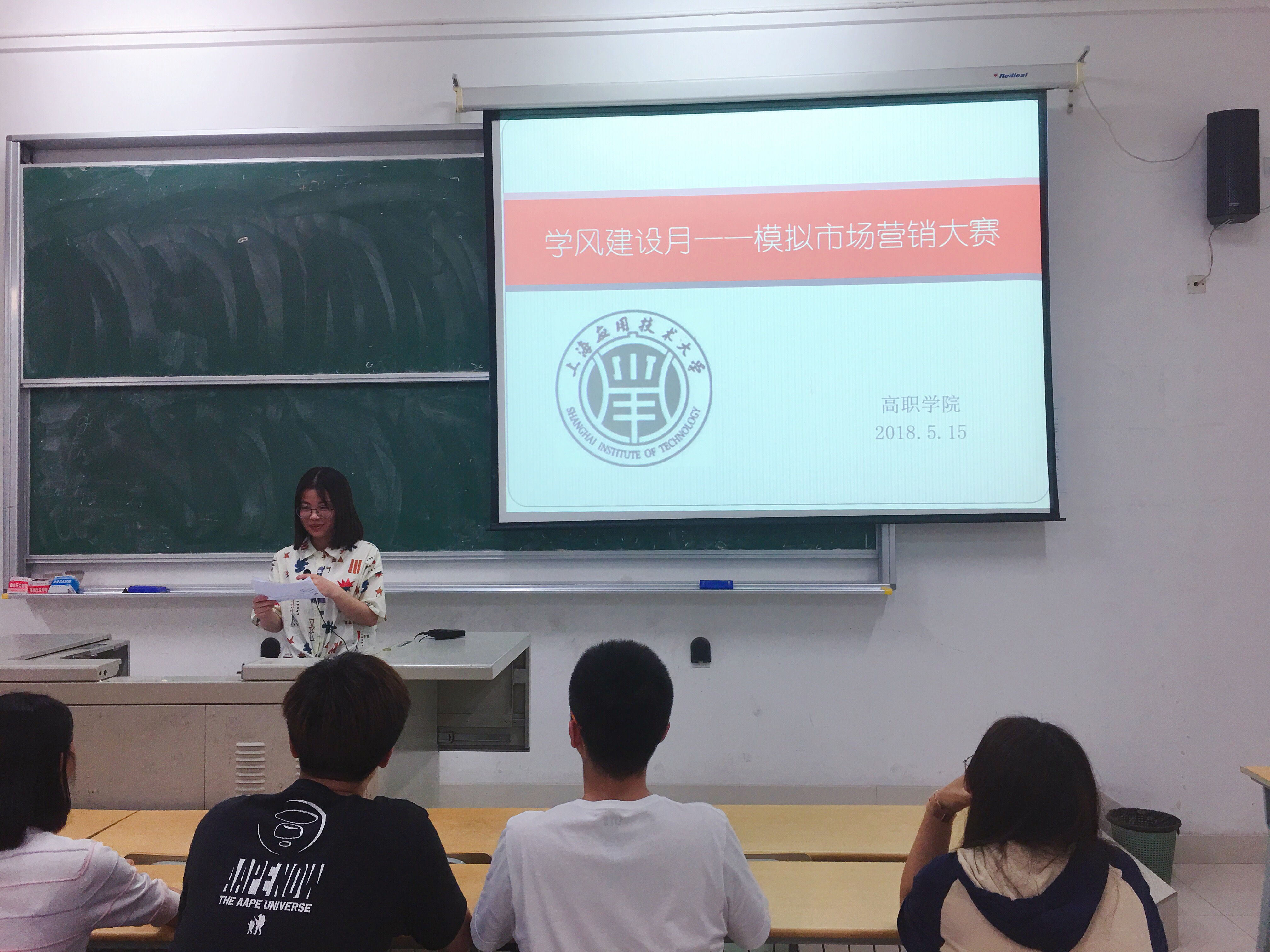近日,高职学院在奉贤校区召开举行模拟市场营销大赛。2017级商务管理班全体同学参加了此次大赛。商务管理专业主任施谊老师,学生会副主席徐加沪,学生会学管部部长薛瑾茹,16级商务管理班班长汪琦担任评委,大赛由学习委员徐俊蓉主持。