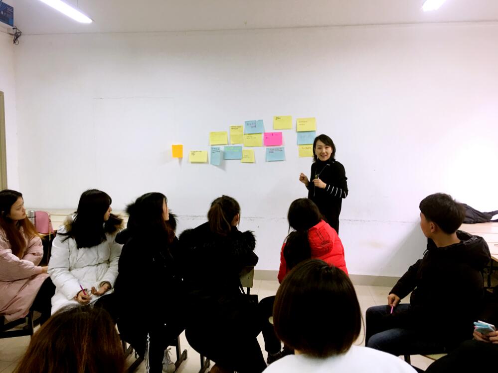 现场气氛活跃,大家各抒己见。同学们通过趣味的体验来学习情商,认识情绪的智慧和力量!学习有效地觉察与认识情绪,从自己心愿开始,体验情绪对于心愿的影响力,从表达情绪中发现自己的价值和资源从情绪的信息中找到意义与价值,学会如何在学习、生活及职场中,创造更多积极的改变!