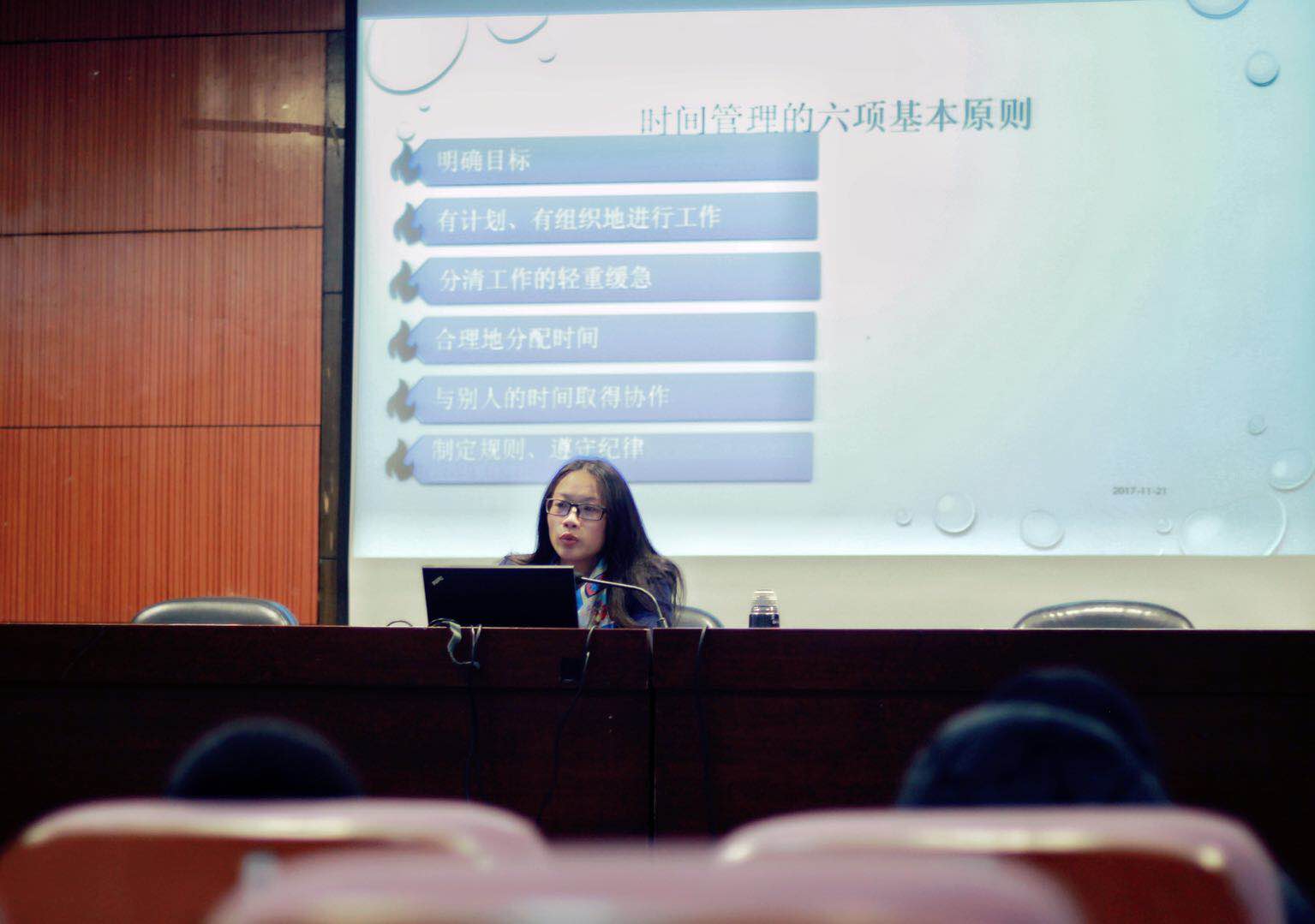 此次讲座让同学们深刻体会到了有效时间管理的重要性。让同学们明确目标,有计划有组织的进行工作,分清工作的轻重缓急,合理的分配时间,与别人的时间取得协作,制定规则遵守纪律。讲座在同学们热烈的掌声中圆满结束。