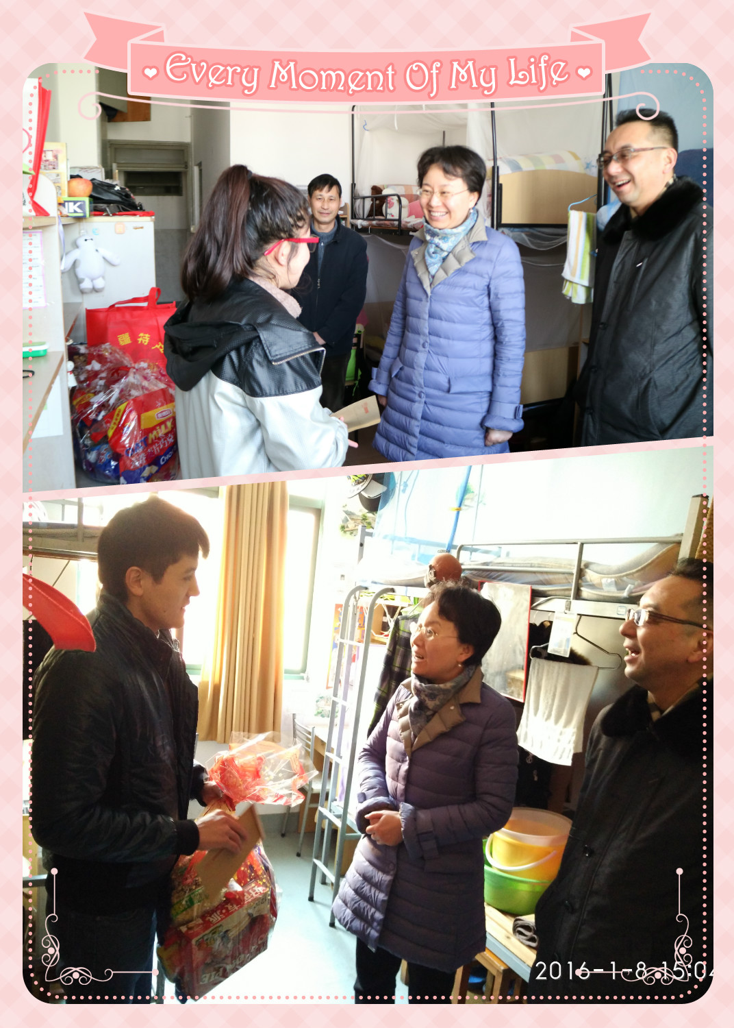 1月8日下午,副校长张艳萍、学工部部长、校长办公室主任袁翔在学生处资助管理中心负责人、高职学院总支书记、副院长、辅导员的陪同下,来到徐汇校区学生宿舍看望并慰问了高职学院2名少数民族孤儿学生。