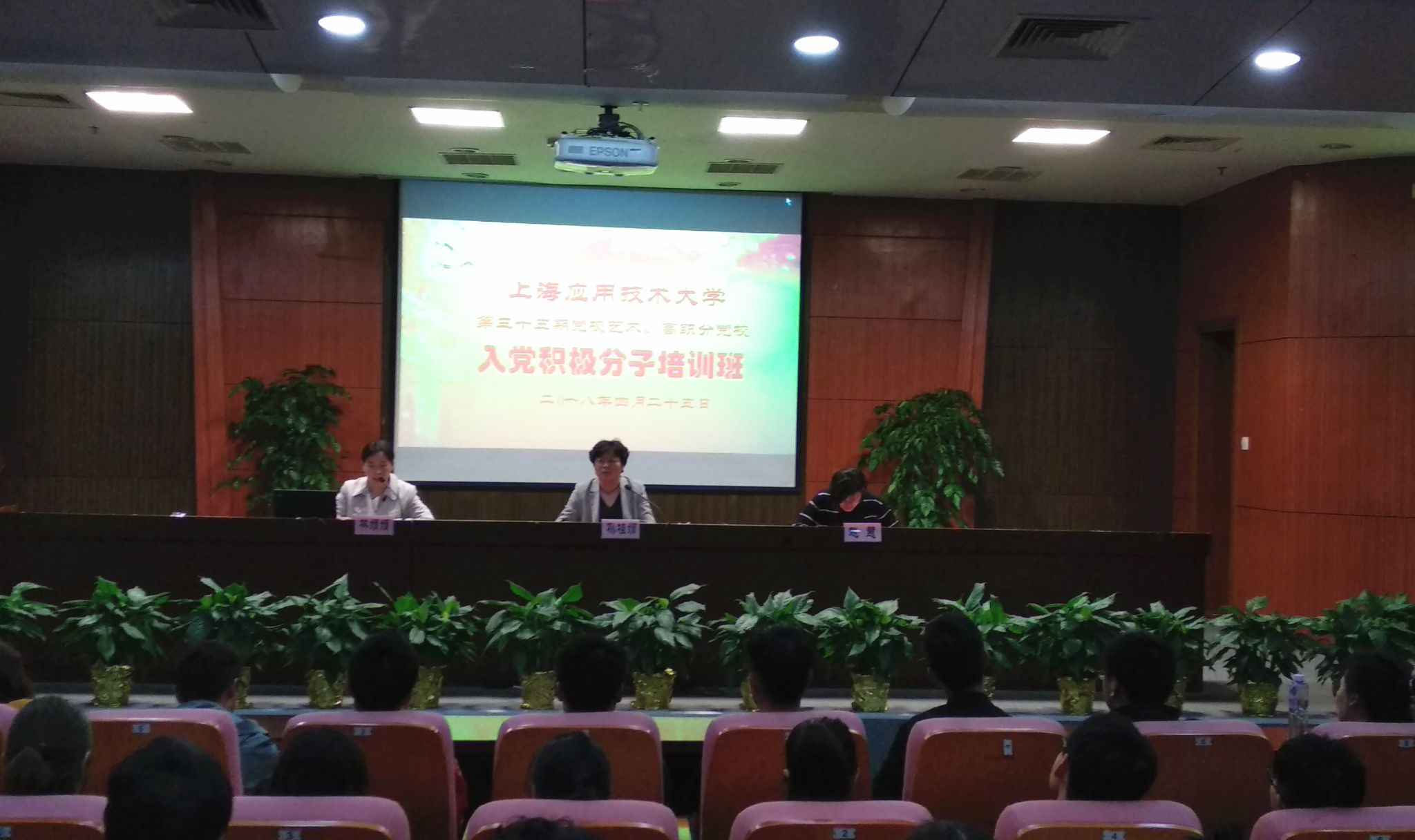 4月25日,上海应用技术大学第35期党校艺术高职分党校在徐汇校区图书馆116报告厅隆重举行入党积极分子培训班开班典礼。艺术学院党总支书记、艺术高职分党校校长孙桂娟,高职学院党总支副书记、艺术高职分党校副校长林娟娟,艺术学院党总支副书记、艺术高职分党校副校长赵慧出席开班仪式。